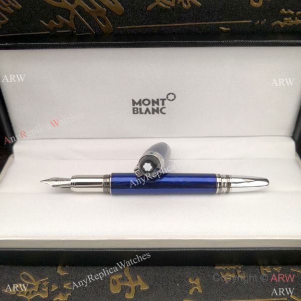 Blue Barrel and Silver Trim Fake Mont Blanc Pens