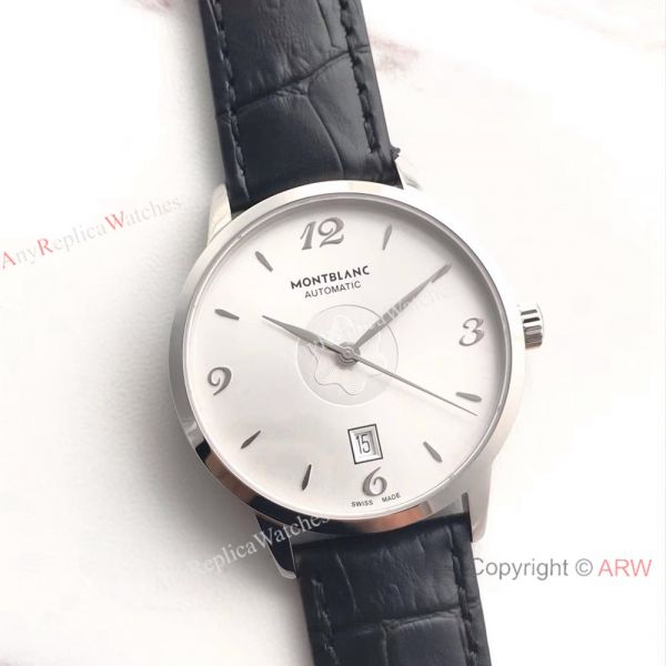 Swiss Quality Stainless Steel Case White Dial and Black Leather Bracelet Montblanc Replica Watches