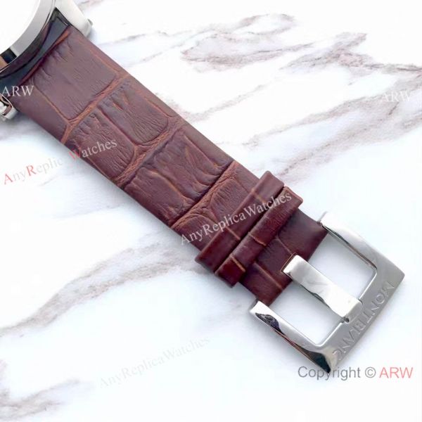 316L Stainless Steel White Face W/ Silver Markers Brown Leather Strap 43mm Mont blanc Clone Watch