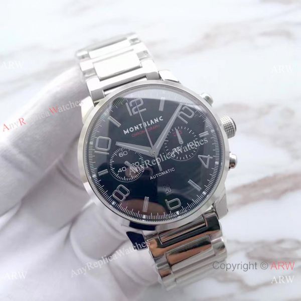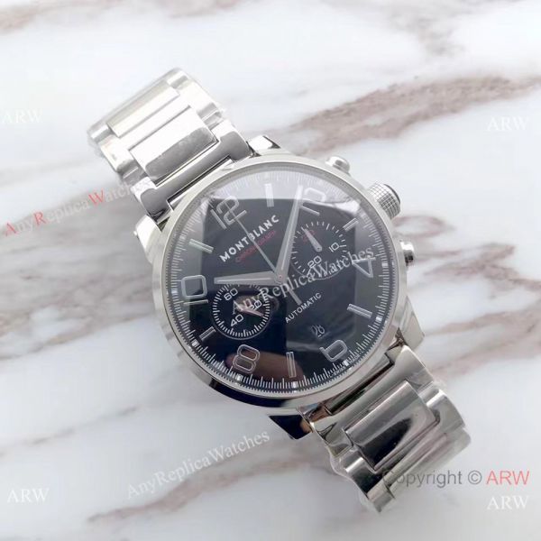 Swiss Grade 7750 Mont blanc Knock off Timewalker 316L Stainless Steel Black Face Watch