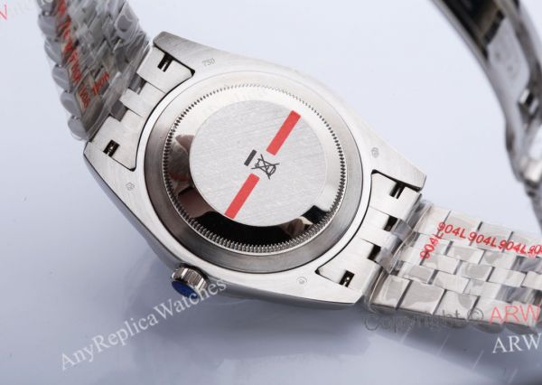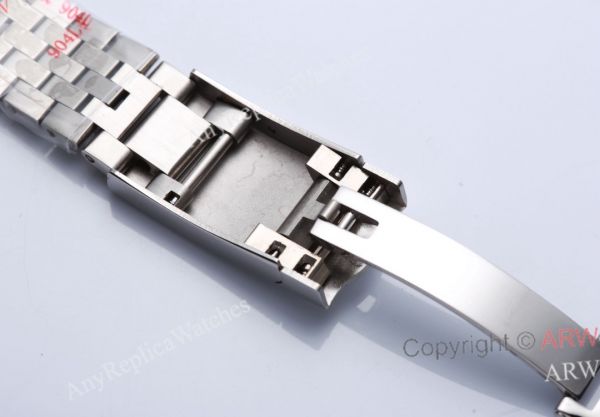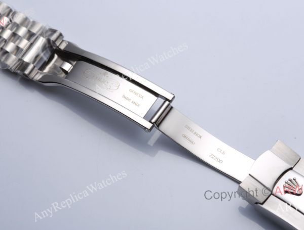 Rolex crown logo micro etched at 6 o'clock in the crystal, screw links, solid end links