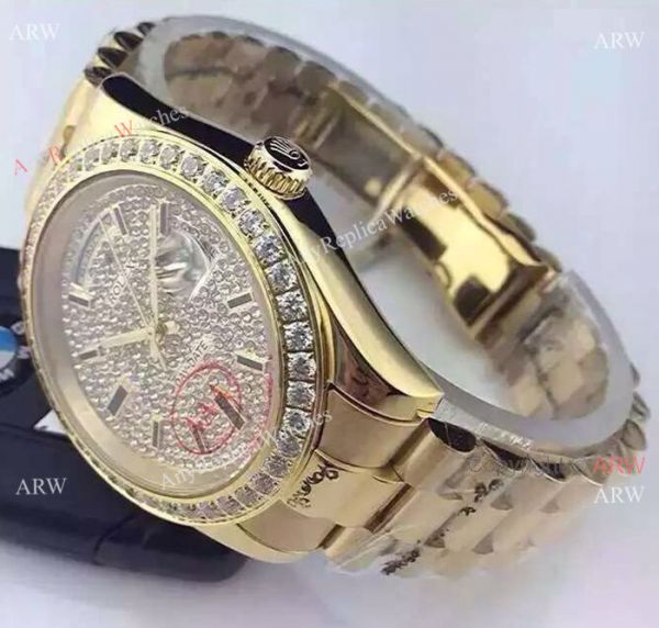 Case Measures 41mm Larger Size Rolex Presidential Diamond Bezel Replica Watch