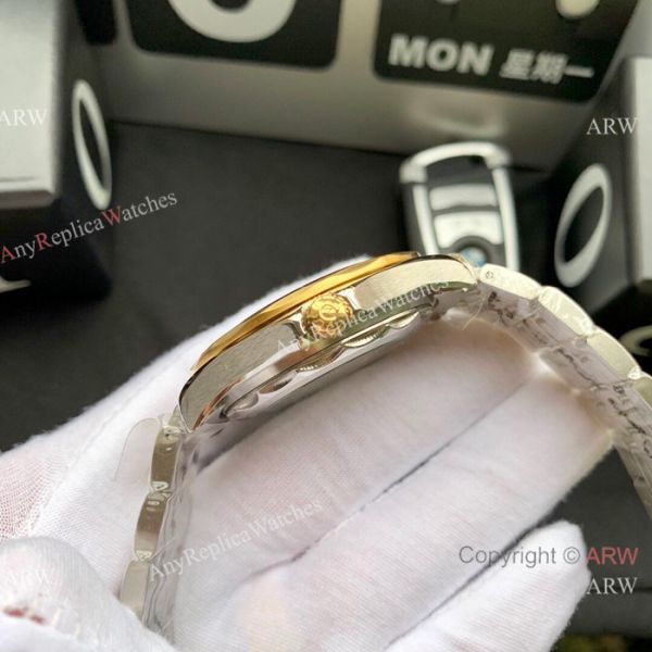 Watch Band: Omega Two Tone plated 316l Stainless Steel watch Strap with original style deployment buckle