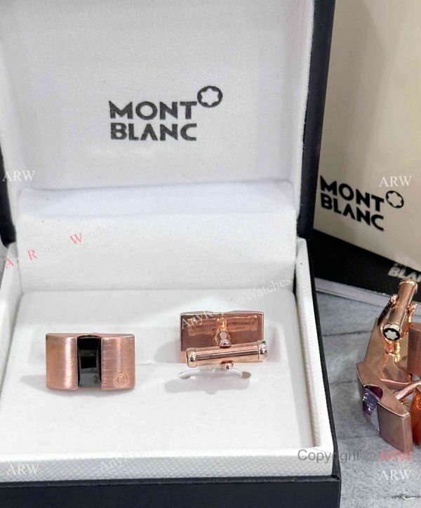 Copy Mont Blanc Rose Gold Cufflinks set with black elements