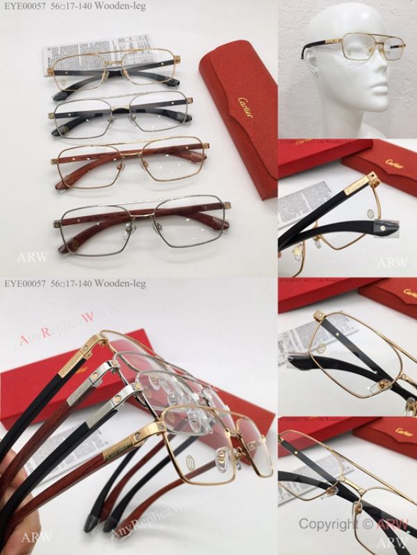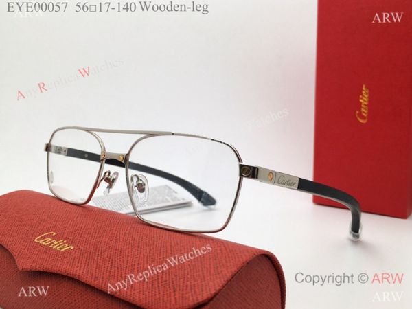 High-end Replica Cartier Santos Silver Eyeglasses Wooden leg EYE00057