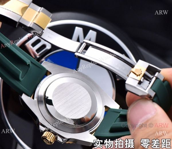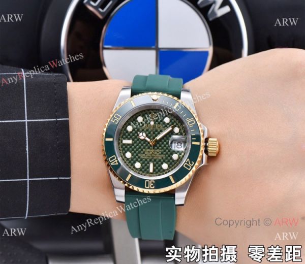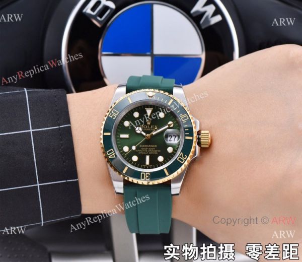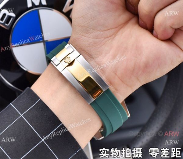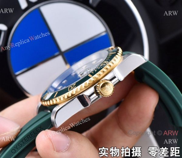 Copy Rolex Submariner Date 2 Tone Green Rubber Strap Watch 41mm