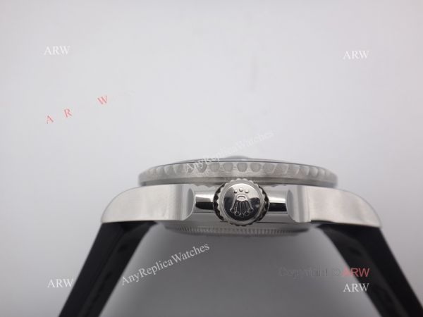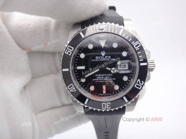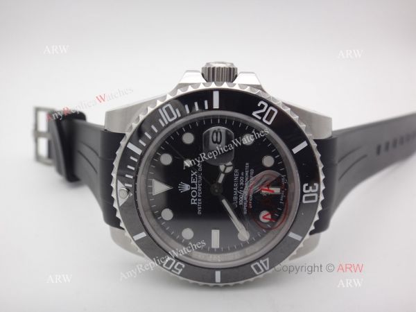 Solid Rolex Stainless Steel Case And Rolex Black Rubber Band With Rolex Oyster Buckle