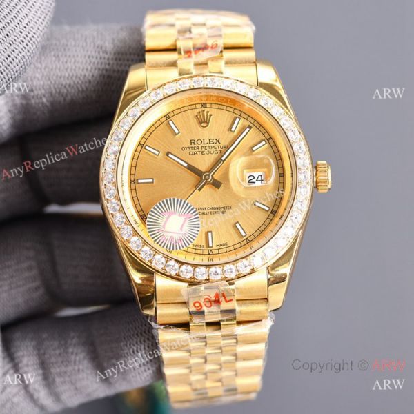 The Oyster Perpetual Datejust II 41mm with a diamond bezel, Black dial and Yellow Gold Rolex Jubilee bracelet
