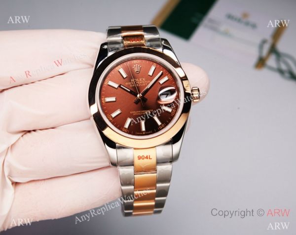 The Rolex Datejust 41 mm with a Beveled bezel, Chocolate dial and 904L Stainless Steel bracelet coated Rose Gold