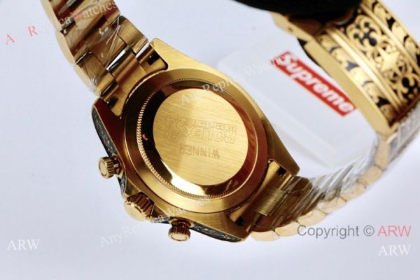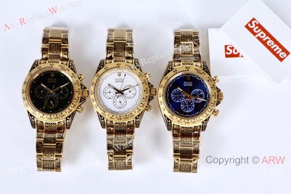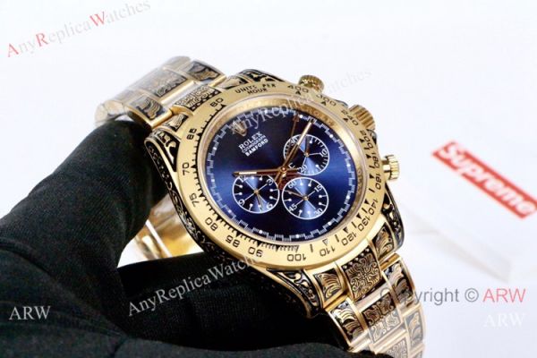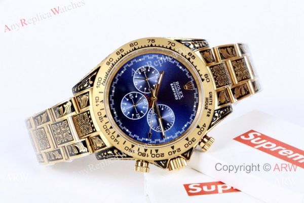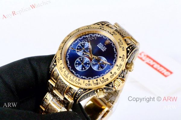 Goldtattoo Case And Band Of This Rolex Daytona Blue Dial Replica Watch