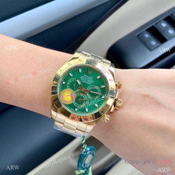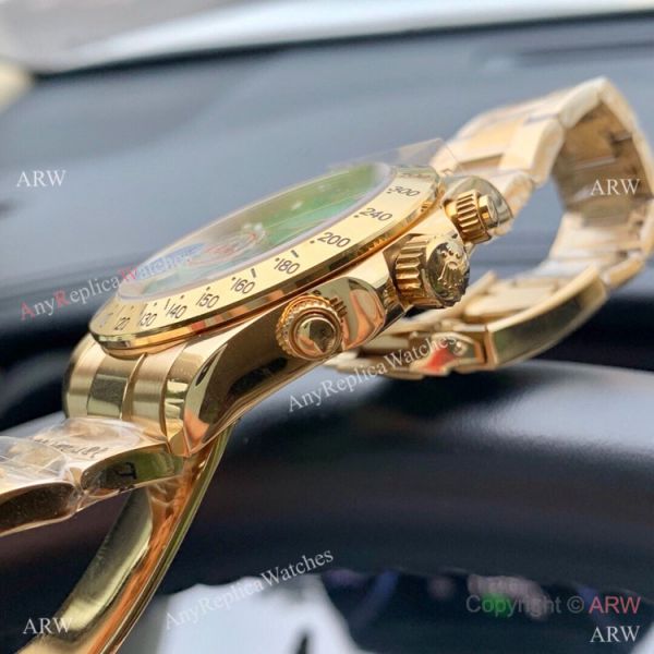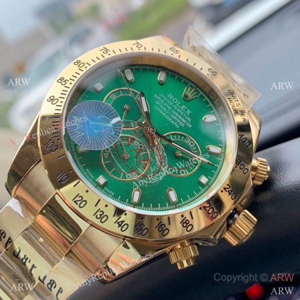 Heavy construction that makes the Yellow Gold Emerald Green Dial Daytona Watch very durable.