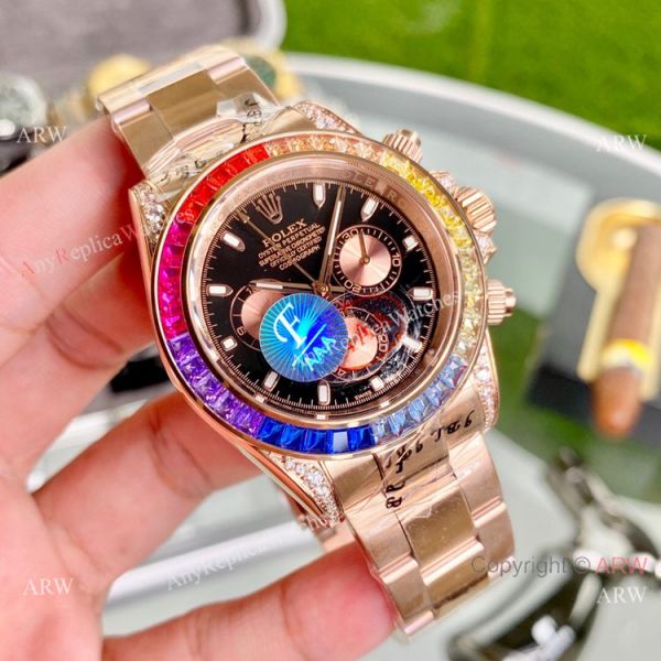 Buy Rolex Daytona Rosegold Rainbow Replica Watches good replica for men.