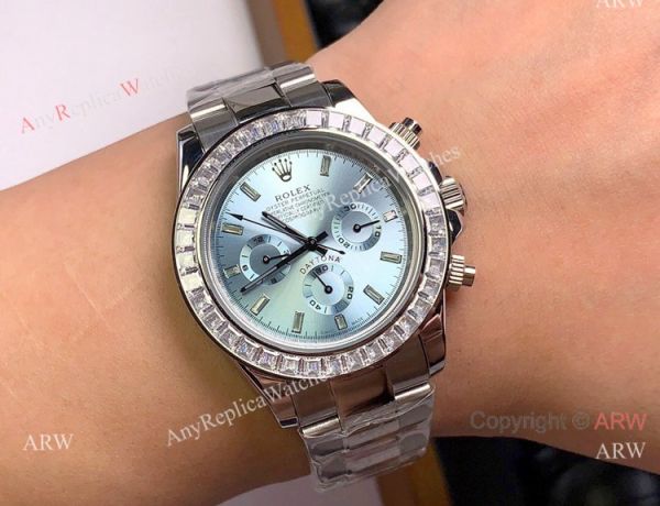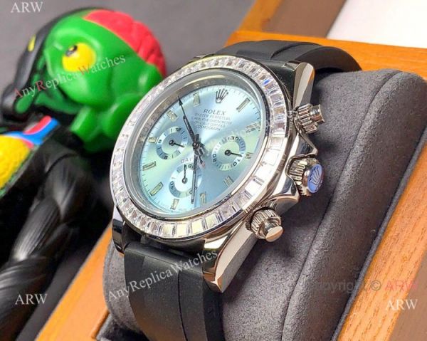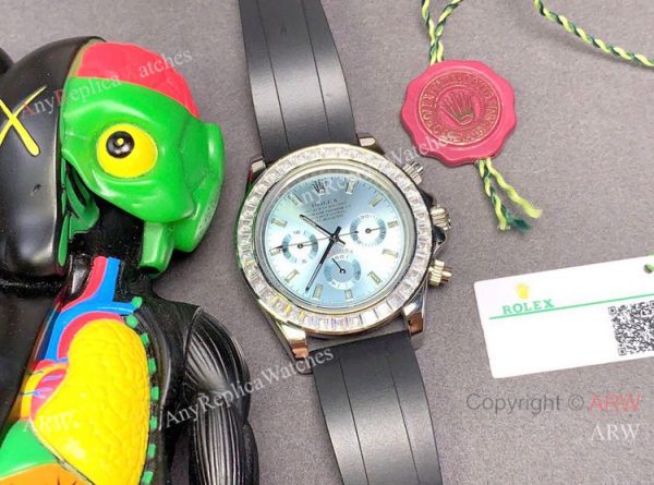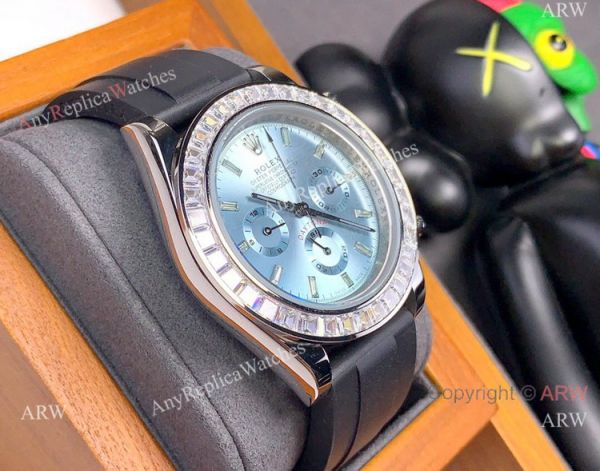 316L Stainless steel case / Diamond bezel / Glacier blue Dial / Rolex Daytona Rubber Strap Buy Online