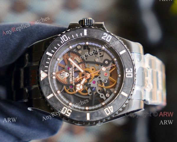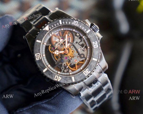 904L Black Steel case / Carbon fiber bezel / Skeleton Dial / Black Steel Strap Rolex Andrea Pirlo Rolex Skeleton Watch Replica Watch Buy Online