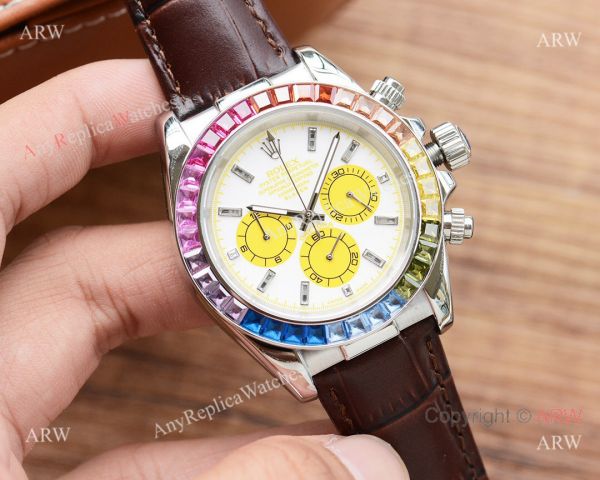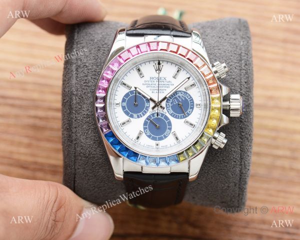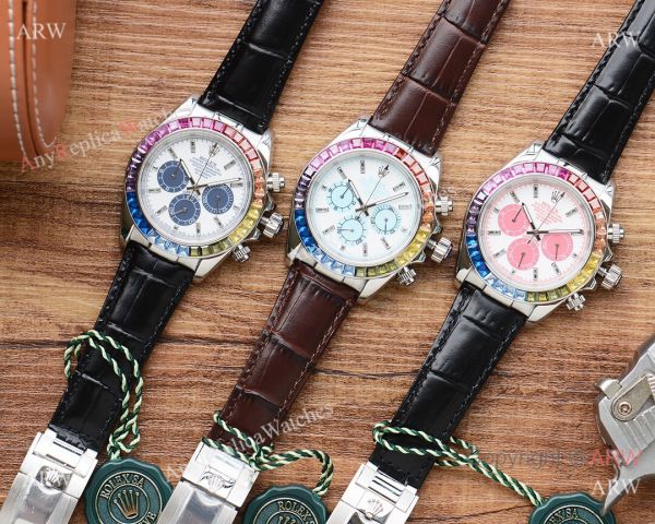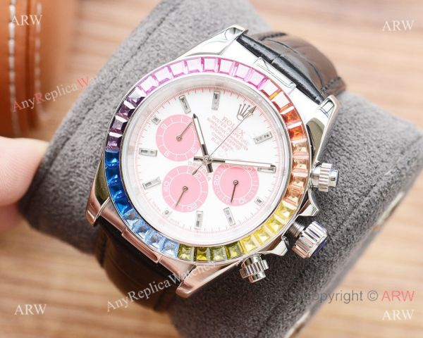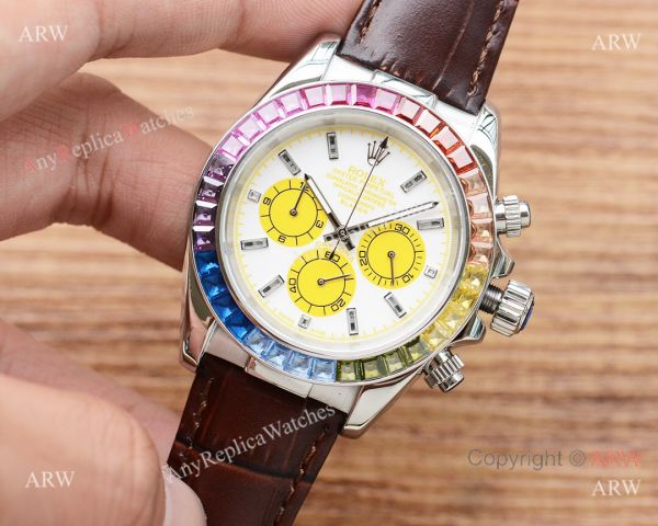 Rolex Daytona Leather Band Rainbow Replica Watches in stock