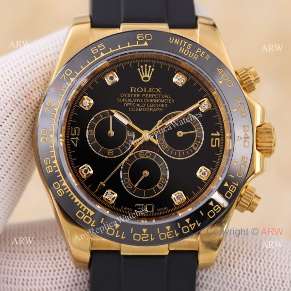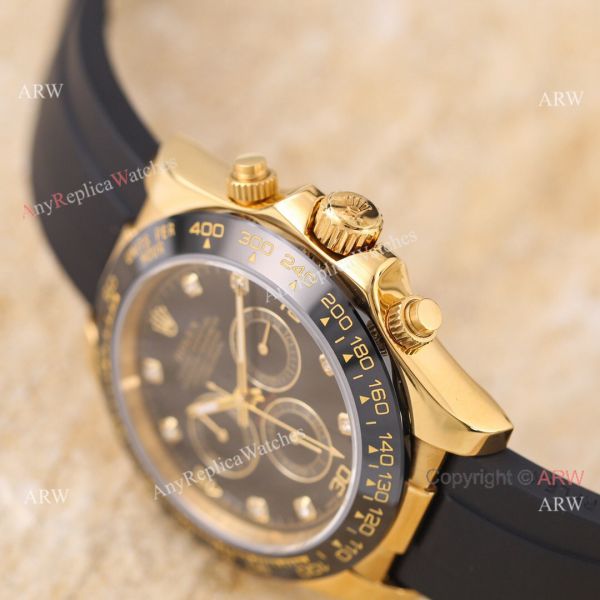 Gold case / Black Ceramic bezel / Black Dial / Rolex Daytona Black Rubber Strap Buy Online