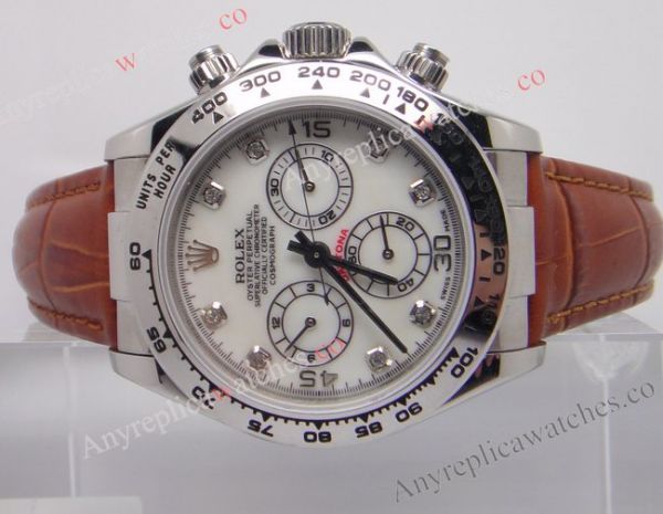 Rolex Daytona Replica White Diamond Dial with Rolex Brown Leather Band