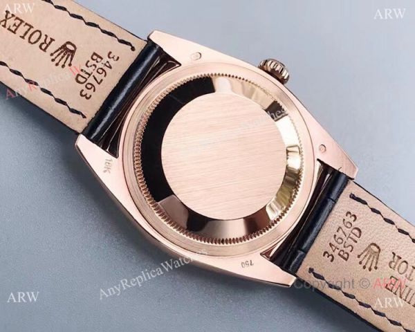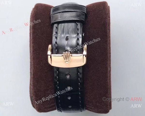 Band Material: Black Leather Watch Band with Rolex Logo on Buckle