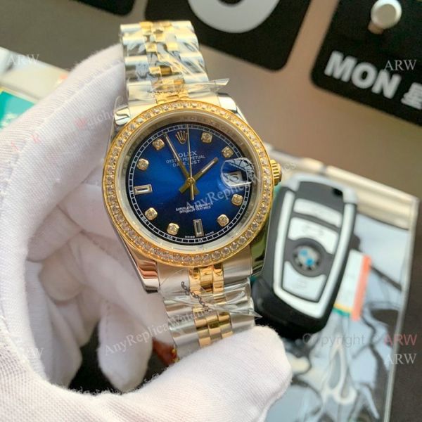 Two-Tone Watch Case Green Dial w/ Diamond Bezel Rolex Datejust Jubilee Watch