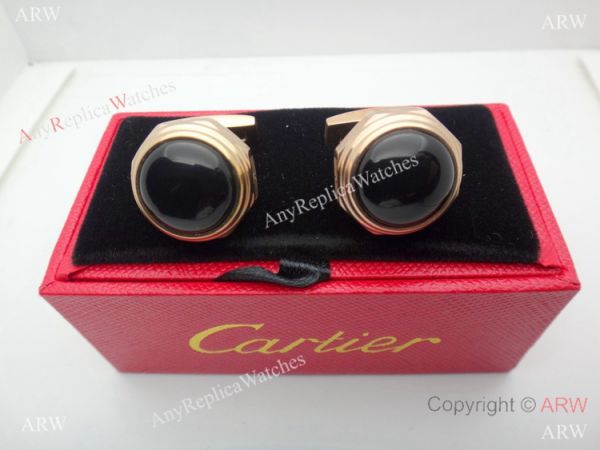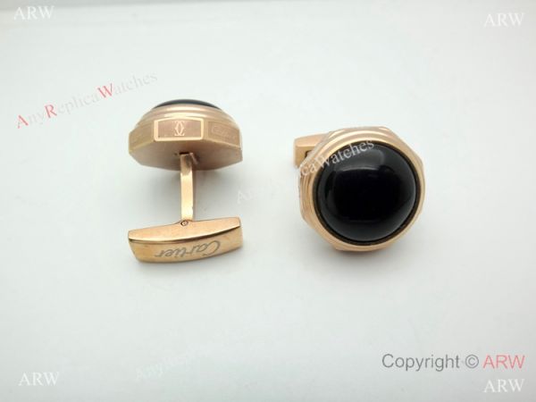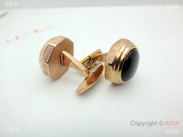Cartier Cufflinks Replica / Black Sapphire / Rose Gold Holder
