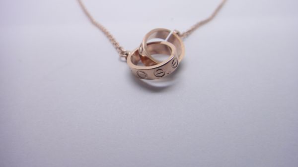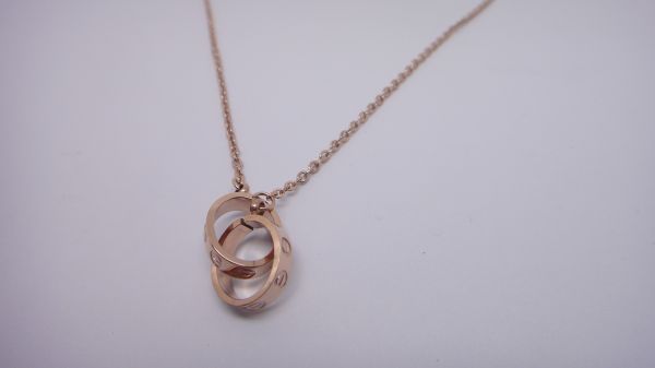 Cartier Pink Gold Chain LOVE Necklace with Double Rings Pendant