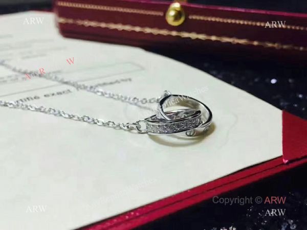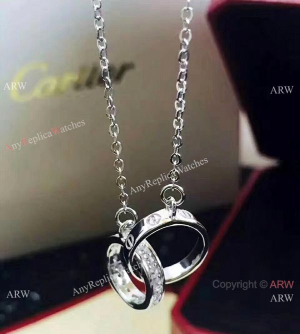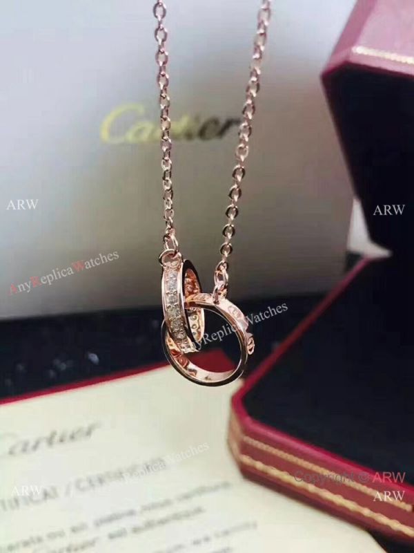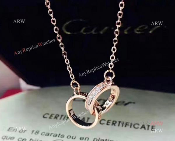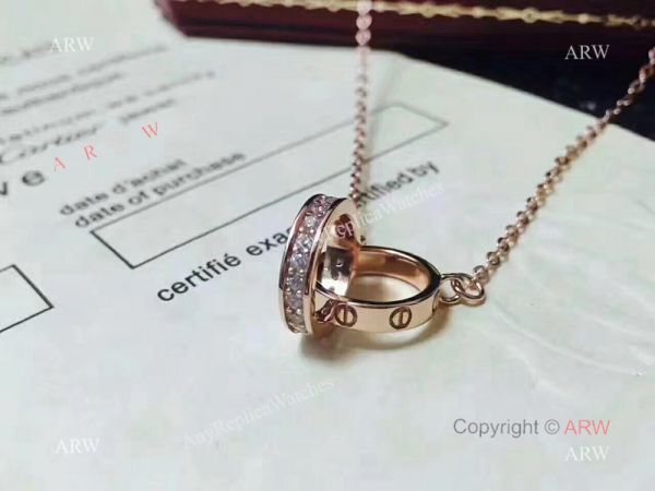 Copy Cartier Pink Gold Love Pendant Necklace with Double Rings