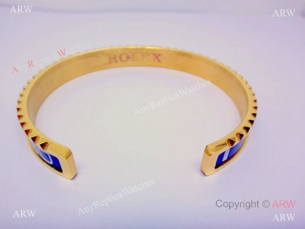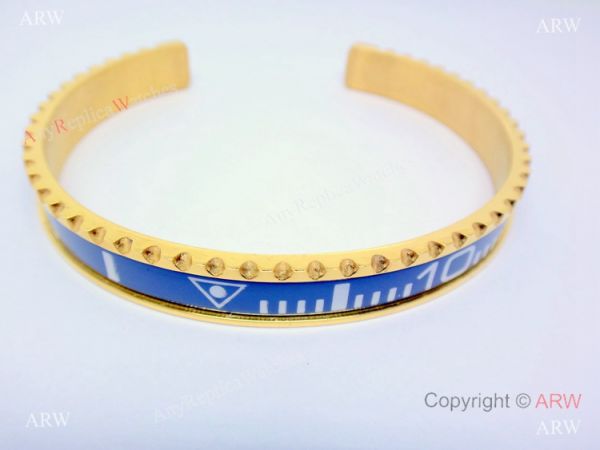 Replica Gold Rolex Bangle - Blue Submariner Watch Bezel Style Bracelet