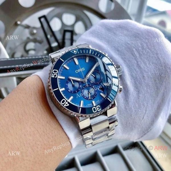 316L Steel Case and Bracelet Blue Dial Blue Ceramic Bezel Oris Watch