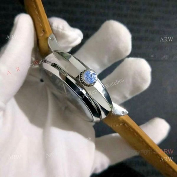 Solid 316L stainless steel case, Black dial, Brown Leather Band.