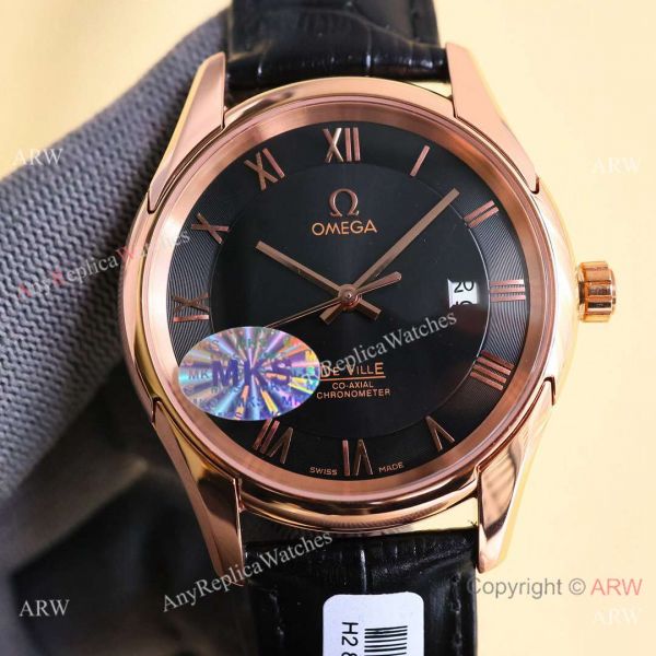 316L Stainless Steel Case coated Rose Gold, Brown Leather Strap and Brown Dial Omega Copy Watch