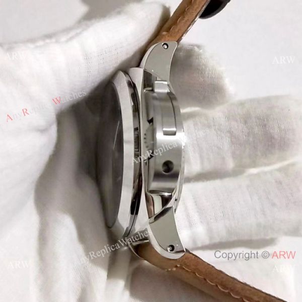 316l Steel case, Gray Rhodium Dial, Green Markers, Brown Leather band with PANERAI personalised buckle