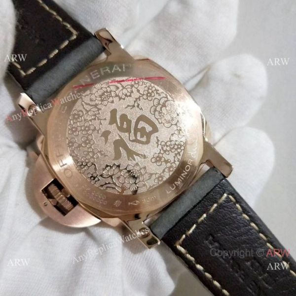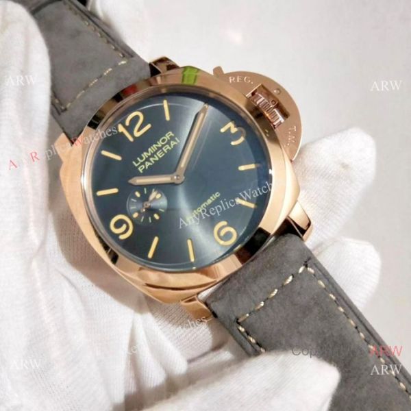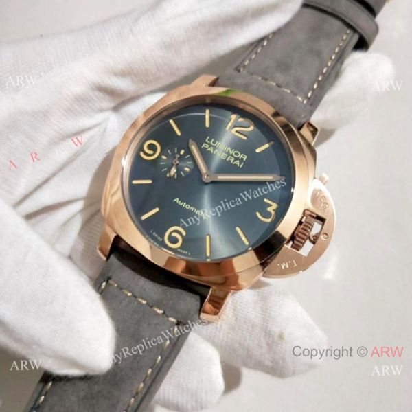 Rose Gold case, Gray Dial, Brown Markers, Gray leather band with PANERAI personalised buckle