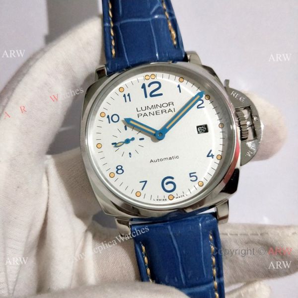 Copy Panerai Luminor Due PAM906 42mm Watch SS Blue Leather Strap