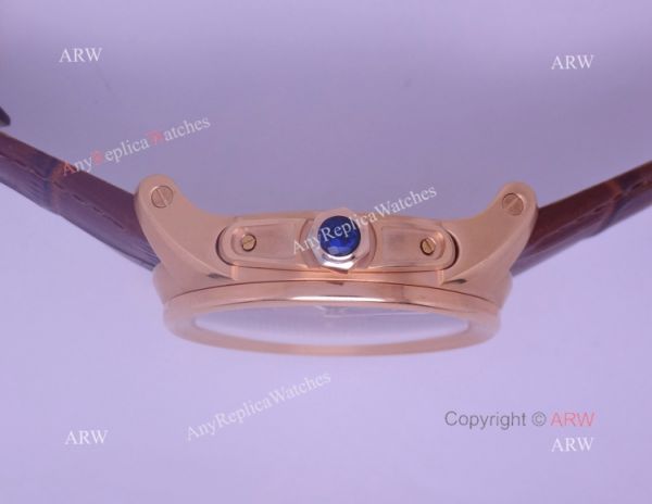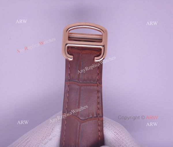 High Quality Brown Leather strap with Deployment Cartier Rose gold buckle