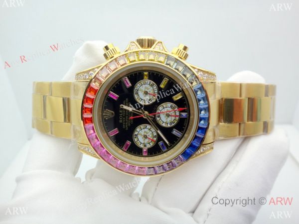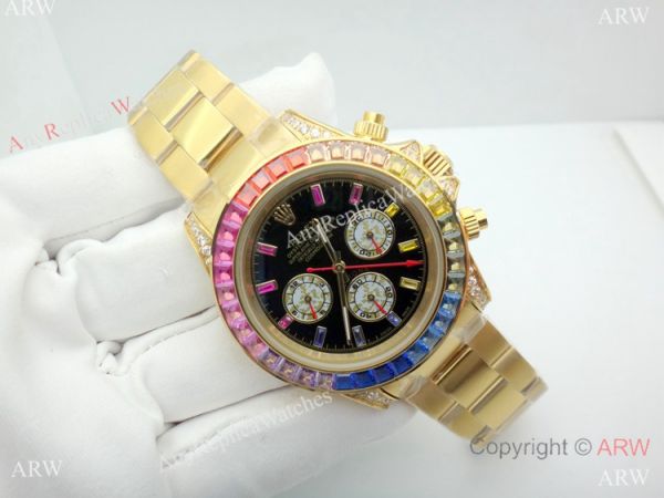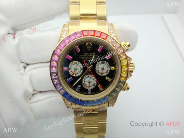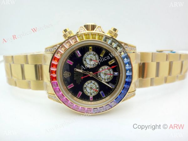 Rolex Cosmograph Daytona 40mm Watch - Rolex Black Dial - Rolex Rainbow Bezel - Rolex Diamond Bezel