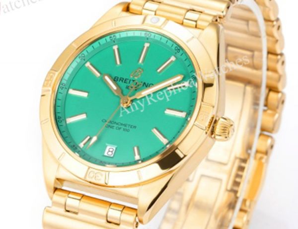 Breitling Chronomat  2824 Automatic Movement  Gold Steel Strap Green  36*10mm Watch