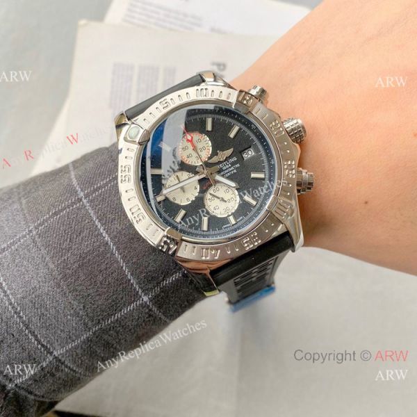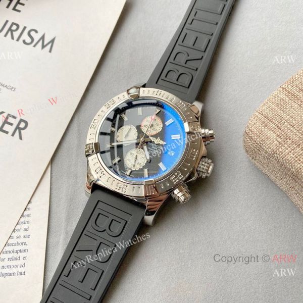 316l Stainless steel Case Black Rubber Bracelet Black Dial Breitling Knockoff Watch