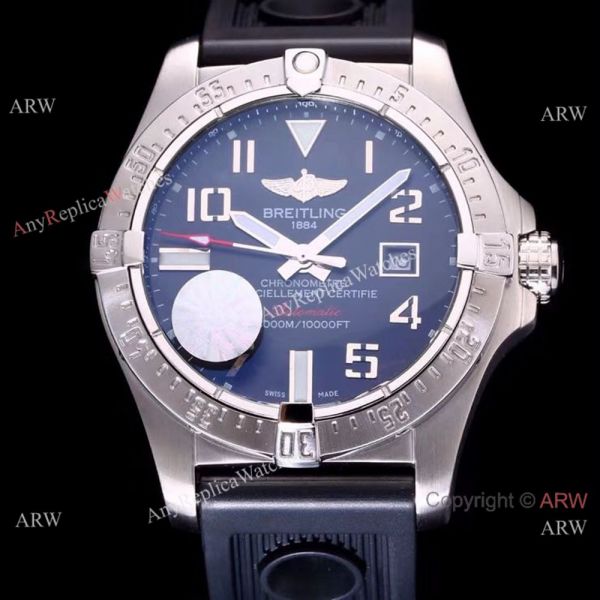 Breitling Watch Replica Avenger II Seawolf Black Dial Black Rubber Band Watch 44mm