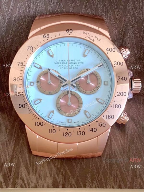 Rose Gold Case White Dial w/ Rose Gold Subdials Rolex Wall Clock Replica For Sale