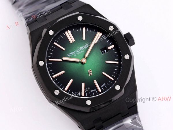 Audemars Piguet Royal Oak Jumbo Green Dial All Black Mens Replica Watches 41mm