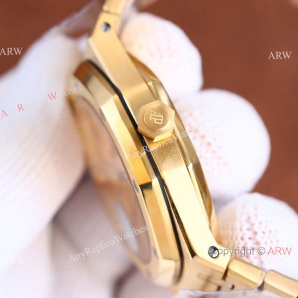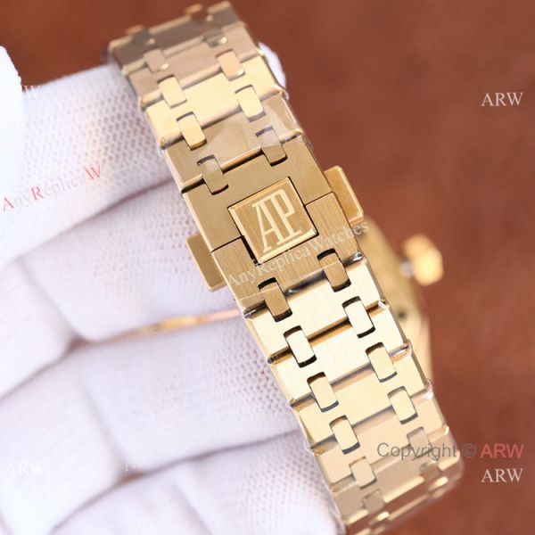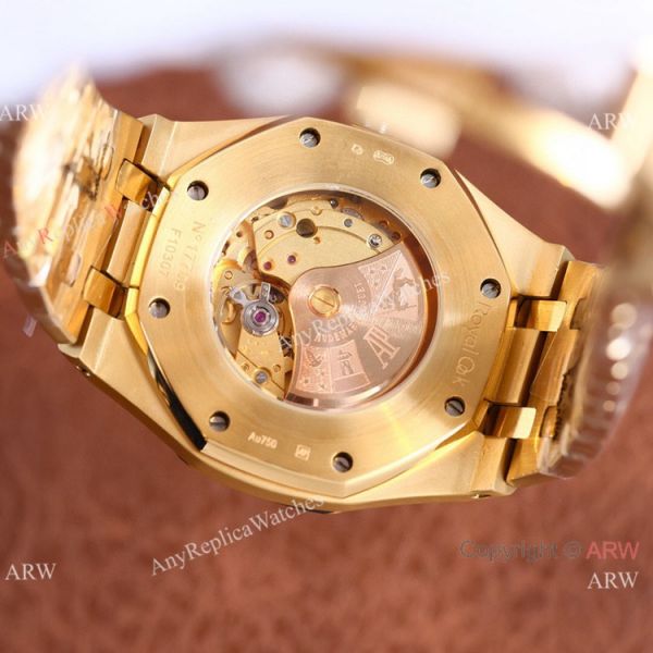 904L Stainless Steel Case coated Gold Gold Textured Dial 904L Gold Royal Oak Jumbo Watch Replica Bracelet