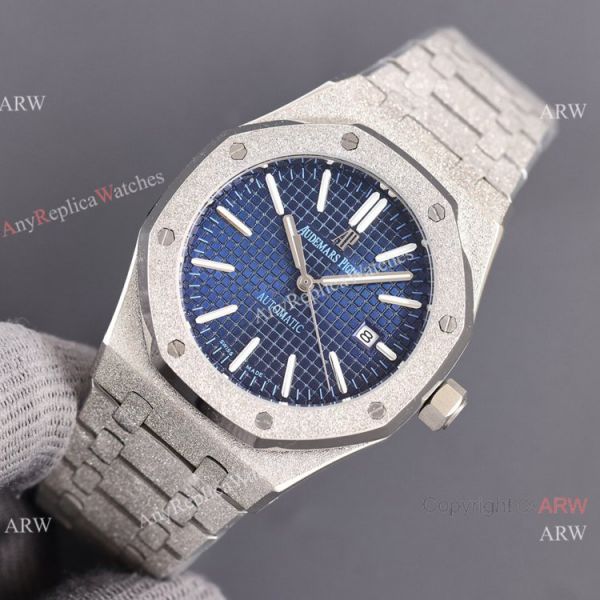 904L Stainless Steel Frosted Case Blue Textured Dial Stainless Steel Frosted Replica AP Royal Oak Bracelet