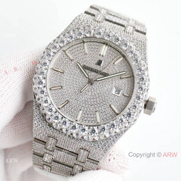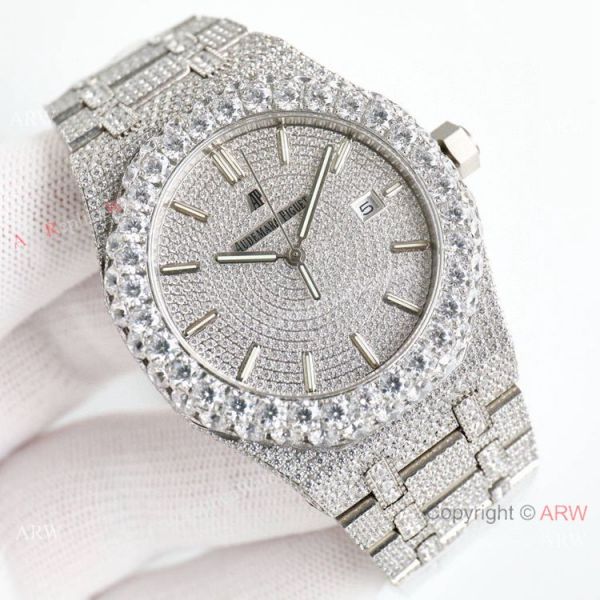 Swiss Quality Replica Audemars Piguet Royal Oak Watch Inlaid with Diamonds , We only sell the highest quality AP 15400 Watch. Replica Audemars Piguet Iced Out Buy Now, Our replica watches will never let you down.