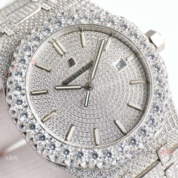 Water resistant case resists water penetration; no swimming or showering recommended with any original or AP Iced Out Watch Replica.