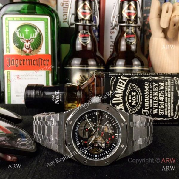 Audemars Piguet Royal Oak Stainless Steel Black Dial Fake AP Skeleton Watch