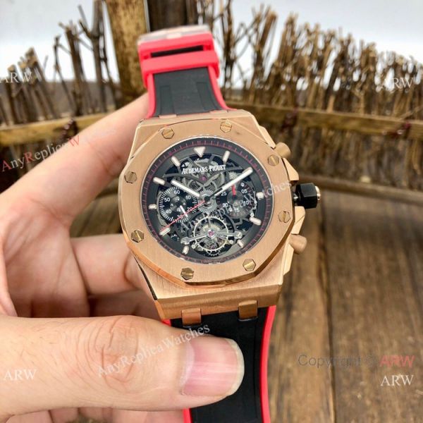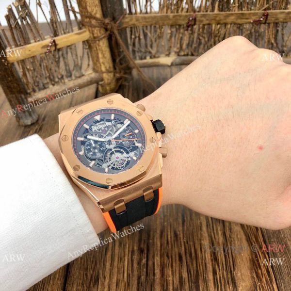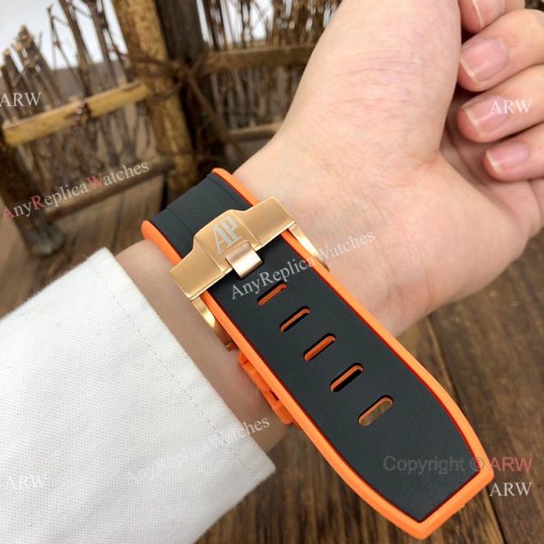 316L Rose Gold Case Skeleton Face Black&Orange Rubber Strap AP Watch