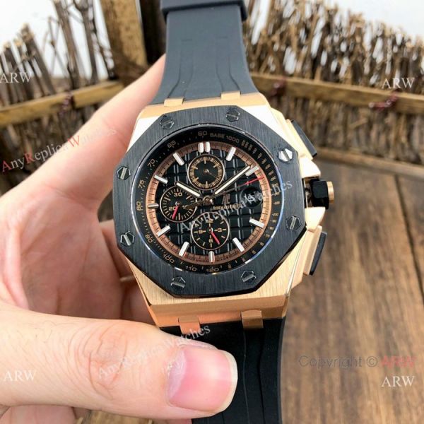 316L Rose Gold Case Black Face Black Rubber Strap Audemars Piguet Watch