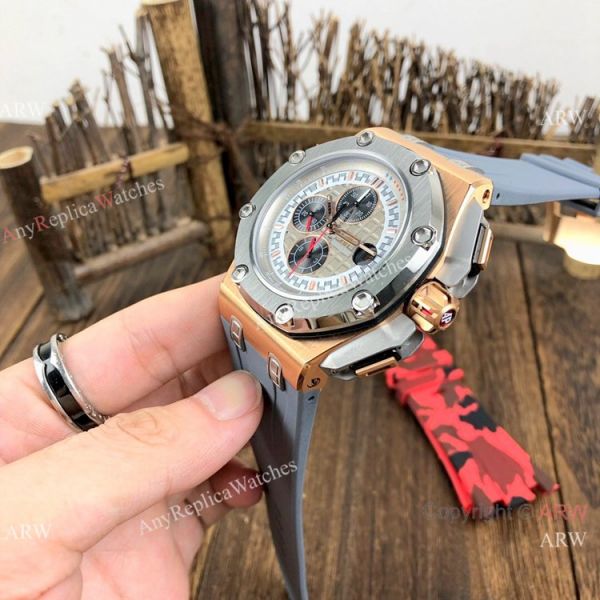 316L Rose Gold Case Gray Face Gray Rubber Strap Audemars Piguet Michael Schumacher Watch