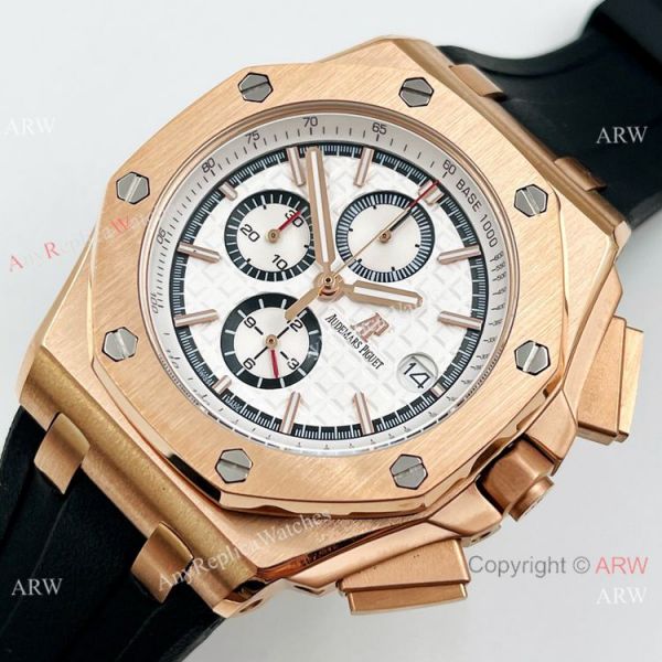 316L Rose Gold Case Black Rubber Bracelet White Dial Audemars Piguet Watch