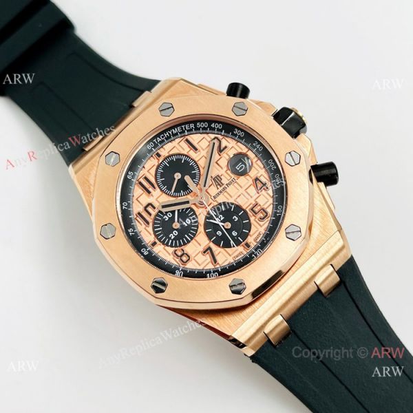 316L Stainless Steel coated Rose Gold Case Black Rubber Bracelet Rose Gold Dial Audemars Piguet Watch